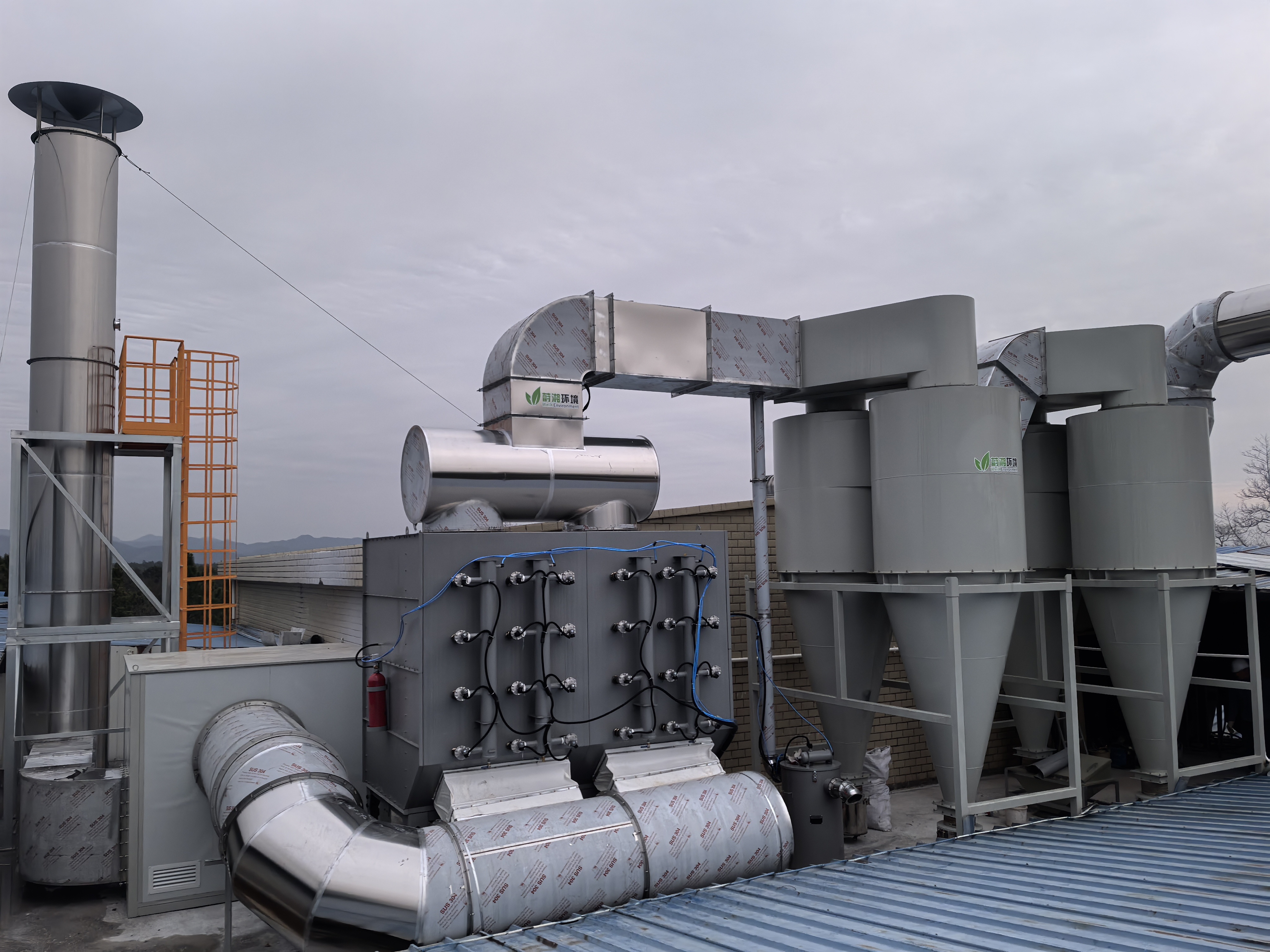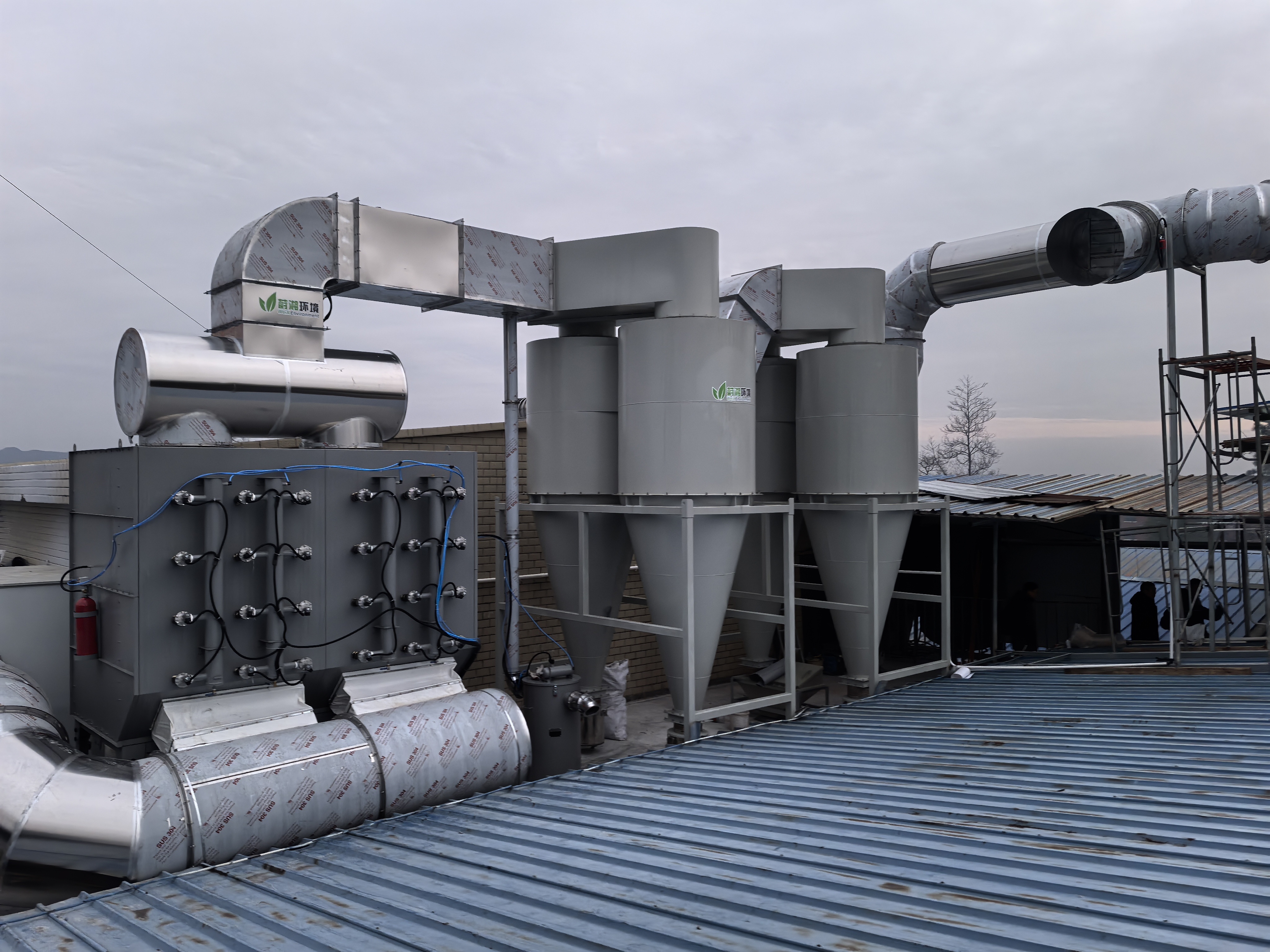 地址:湖南長沙縣 項目簡介:電爐設備運行過程中產生的高溫含塵廢氣,經凈化設備高效過濾后實現尾氣達標排放,有效改善作業環境,滿足環保要求。 治理工藝:吸氣罩+沉降箱+濾筒除塵器+煙囪。 治理風量:40000?/h。 排放方式:污染物排放濃度≤30mg/m³,15m高度煙囪排放。